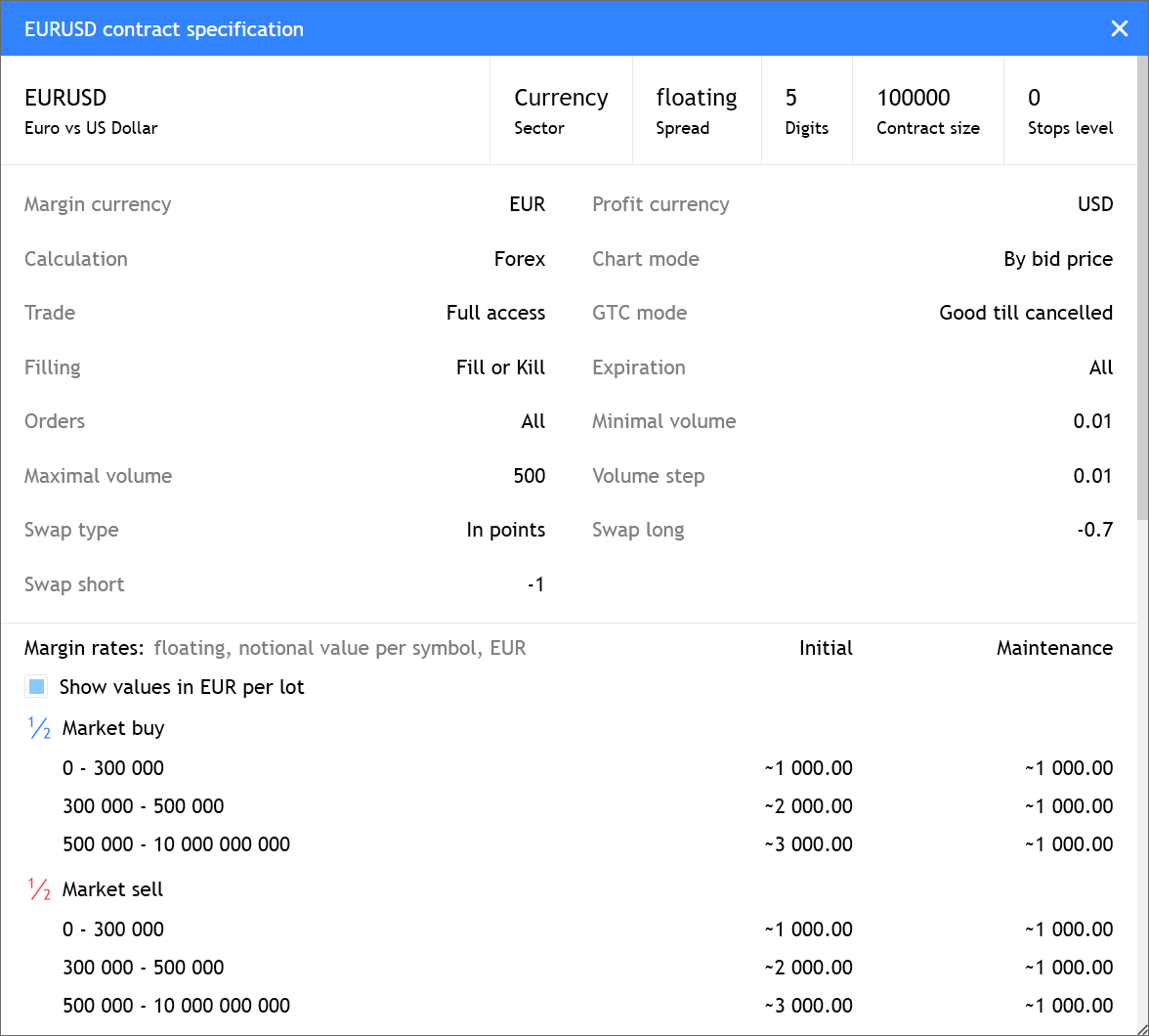 - 改进交易品种规格中的预付款部分。该部分现在提供每个交易品种的预付款率和计算值。