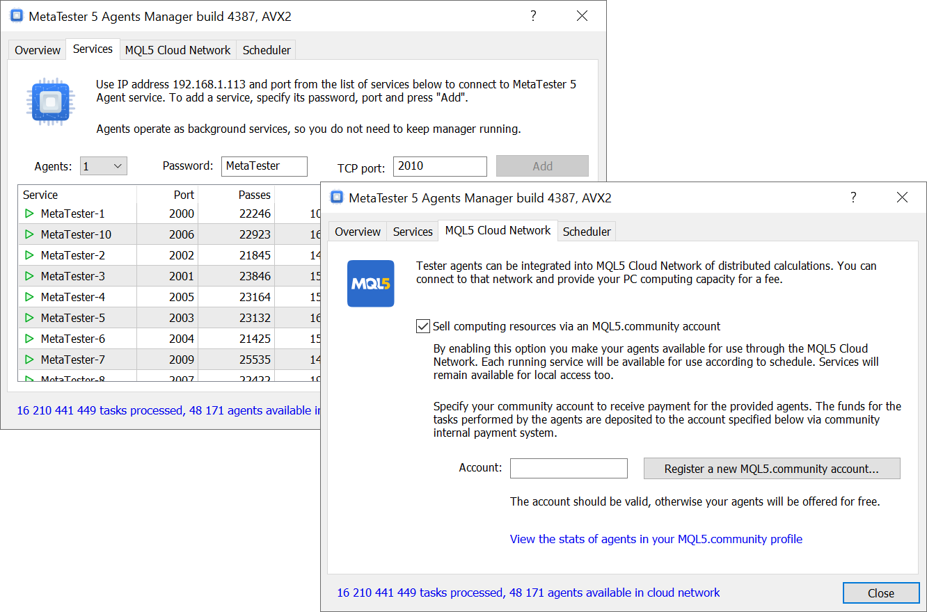 已安装代理的所有后续操作都将自动进行。该网络将每天分配任务、收集结果并将已完成工作的付款转账到您的帐户。使用详细报告监控代理的运行。加入 MQL5 云网络,开始赚钱。